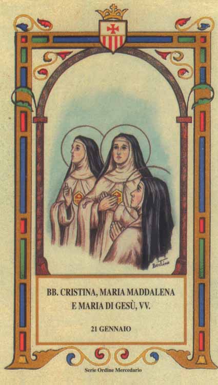 Nel monastero mercedario di Vera Cruz in Berriz (Spagna), le Beate Cristina, Maria Maddalena e Maria di Gesù, come le vergini sagge anch'esse con le loro virtù e vita esemplare riempirono le loro lampade e all'arrivo dello Sposo entrarono con lui alle nozze. L'Ordine le festeggia il 21 gennaio.