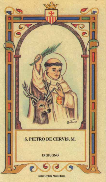 Originario di Perpignano (Francia), San Pietro de Cervis, entrò nell'Ordine della Mercede e divenne commendatore del convento di Santa Maria in Narbona. Con ardente desiderio di soffrire per Gesù Cristo, partì verso il regno moro di Granada (Spagna) per la promulgazione della fede cattolica e la redenzione degli schiavi. Arrivato nella città di Granada venne subito privato dei beni che gli servivano per la liberazione dei prigionieri, fu percosso e gettato in una fetida prigione dove morì fra atroci supplizi nell'anno 1422. L'Ordine lo festeggia il 15 giugno.