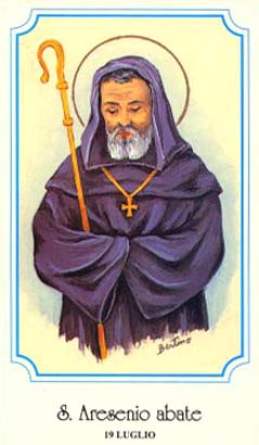 Arsenio era nato a Roma intorno al 354 da nobile famiglia senatoria. Nel 383 l'imperatore Teodosio lo volle a Costantinopoli per affidargli l'educazione dei figli Arcadio e Onorio. Vi restò undici anni, fino al 394, quando in seguito a una profonda crisi spirituale ottenne l'esonero da quell'incarico per ritirarsi nel deserto egiziano. Chiedendo a Dio una sicura via per giungere alla salvezza, una voce misteriosa gli avrebbe risposto: «Fuggi gli uomini». Il quarantenne Arsenio seguì alla lettera il consiglio: sbarcato ad Alessandria d'Egitto, si aggregò alla comunità degli anacoreti di Scete, in pieno deserto. Trascorreva notti intere in preghiera e meditazione: una preghiera fatta più di lacrime che di parole, poiché egli ebbe da Dio il "dono del pianto". Dal 434 al 450, che si presume sia l'anno della morte, Arsenio dovette vivere lontano dalla tranquilla Scete, invasa da una tribù libica. Morì a Troe presso Menfi. Di lui, oltre a una cronistoria e a sagge massime, riferite da Daniele di Pharan, amico di due discepoli di Arsenio, ci resta addirittura un ritratto in cui appare di bell'aspetto, maestosamente alto e asciutto.